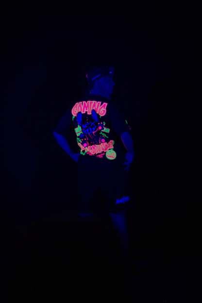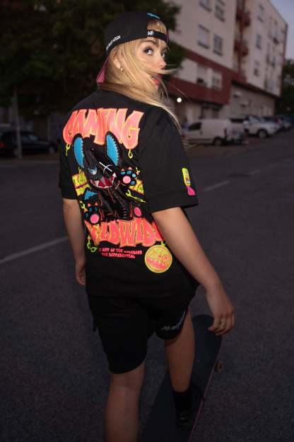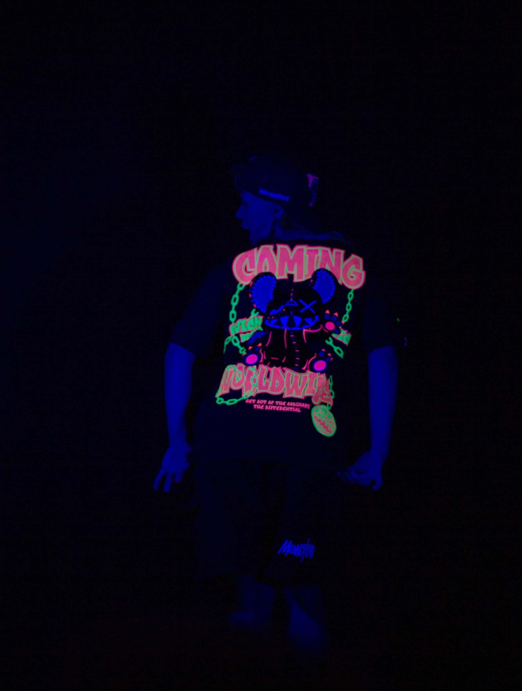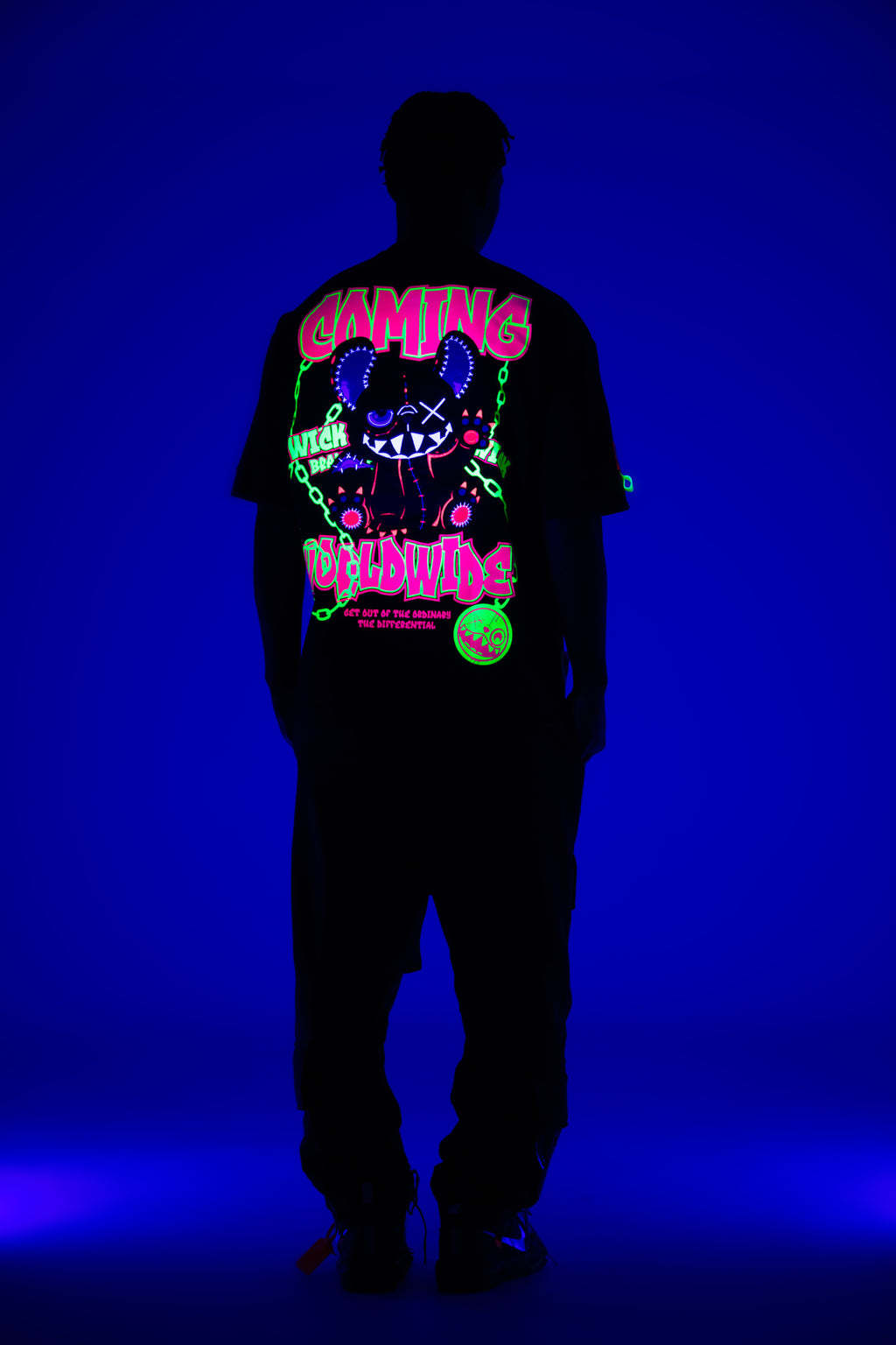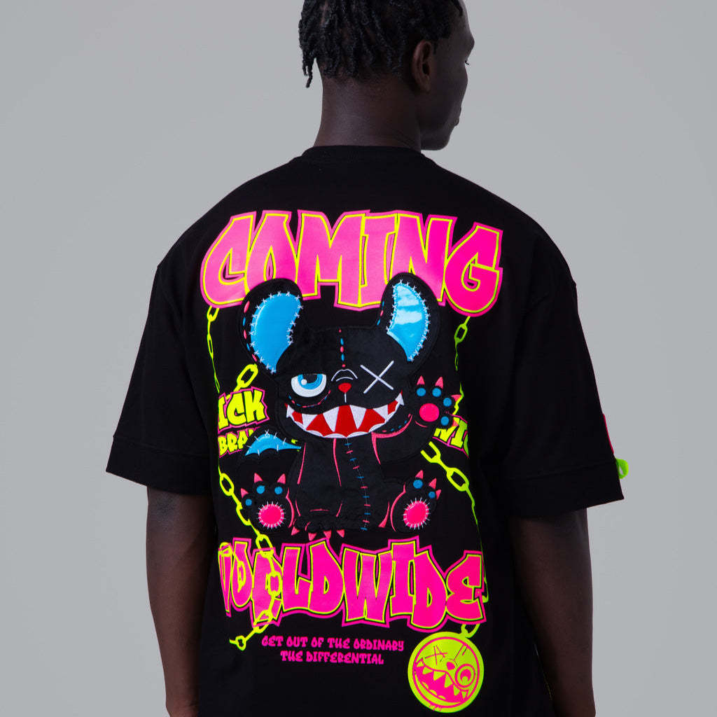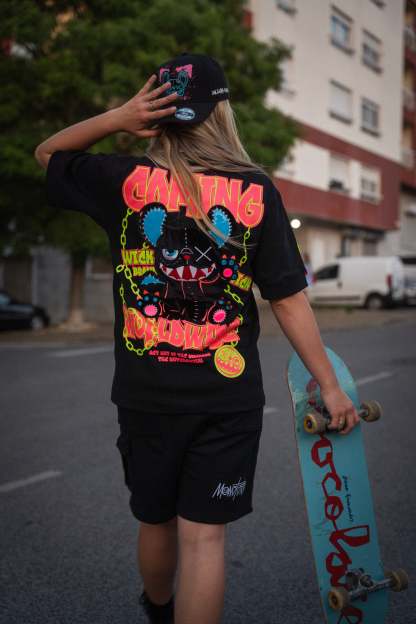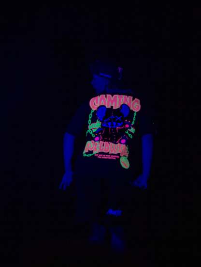 Step into the darkness with the Oversized NR Black Chain Tee from Wick Monsters. This isn't just a tee—it's your rebellious statement against the ordinary. Featuring a bold chain graphic that says "don’t mess with me," and that signature oversized fit that screams streetwear royalty. Perfect for standing out in the crowd—day or night.Glow in the dark and on UV light