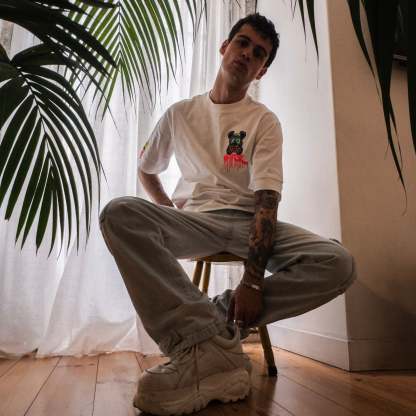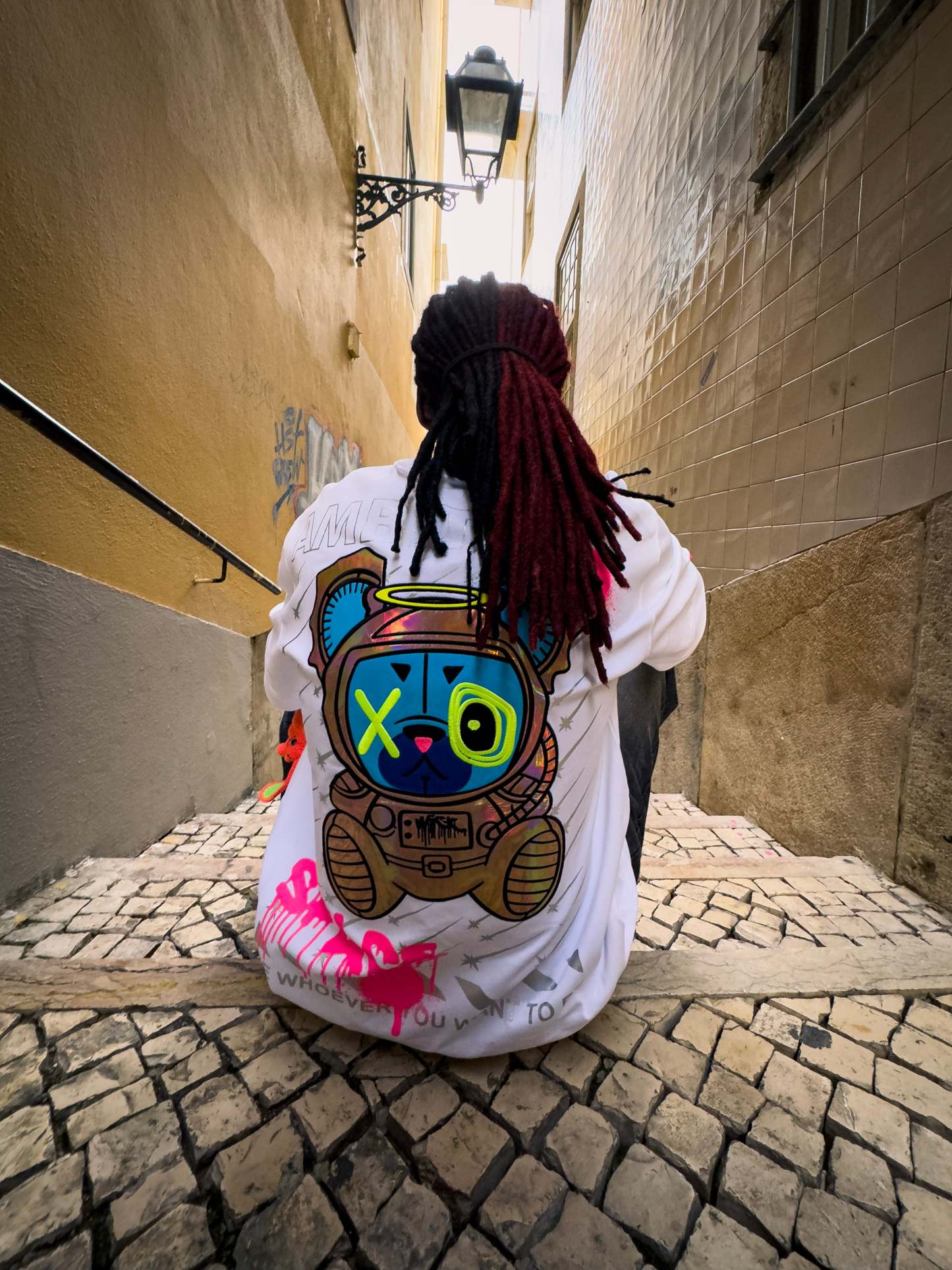 Shoot for the stars with the Space White Oversized T-Shirt—clean, bold, and packed with intergalactic Wick Monsters energy.